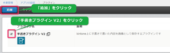 - 「プラグイン」一覧から手書き2プラグインを追加します。