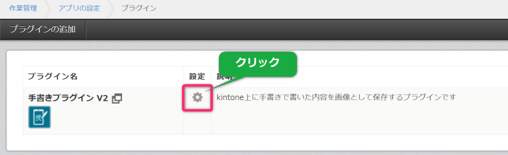 - プラグインの歯車マークをクリックして、プラグインの設定画面を表示します。