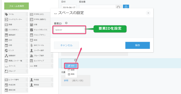 - 作成したスペースに要素IDを設定します。「フォームを保存」をクリックします。