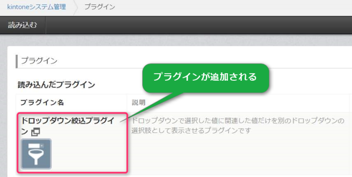 - 読み込んだプラグイン一覧に「ドロップダウン絞り込みプラグイン」が追加されます。
