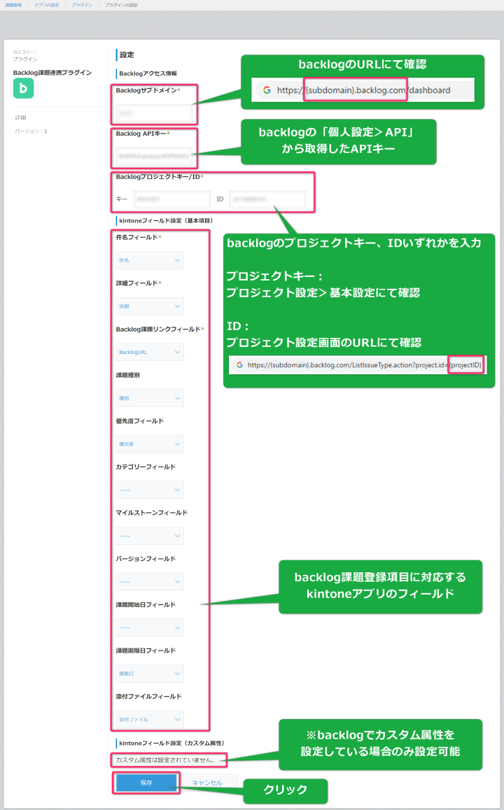 *Backlogサブドメインは、「backlog.jp」ドメインを利用している場合は{subdomain}のみの入力でも可。