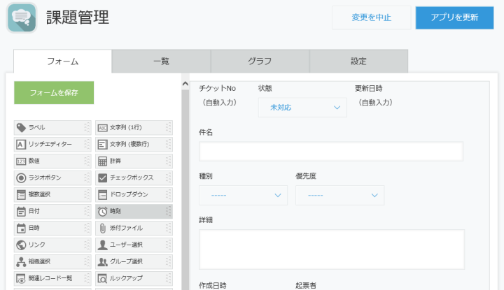 - 「Backlog課題連携プラグイン」に対応するフィールドをkintoneアプリに準備してください。