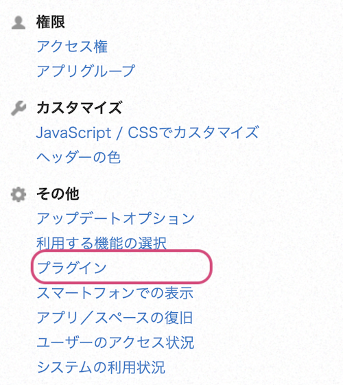 - [kintoneシステム管理]画面より、その他の「プラグイン」をクリックします。