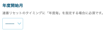 また、連番リセットのタイミングで年度を選択したときには、共通設定から「年度開始月」を設定してください。