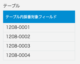 実はこのプラグイン、レコード全体だけでなく、テーブル(サブテーブル)の中の行に対しても採番ができるんです。