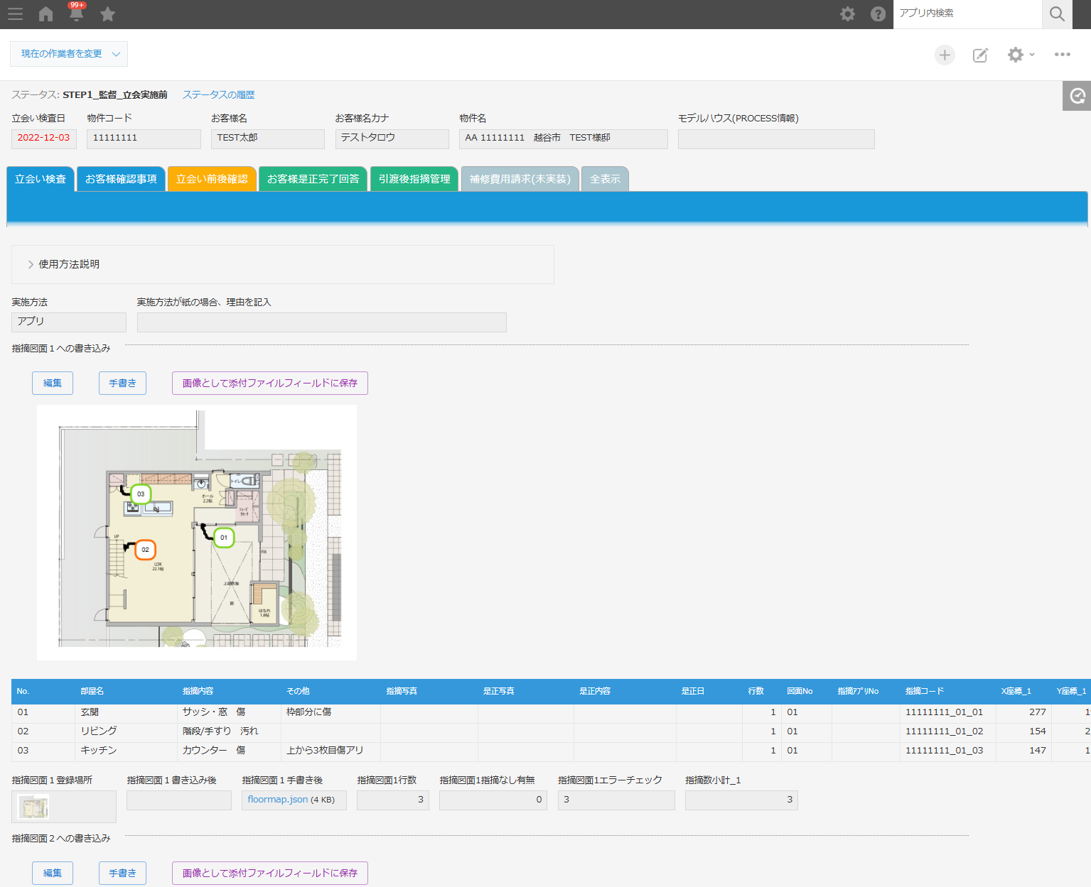 竣工前立会い業務で使用するkintoneアプリにおいて、お客様への引き渡し前に傷や不具合の指摘事項を記録する際、テーブルに追加する指摘のナンバリングを完全手入力で行っていました。