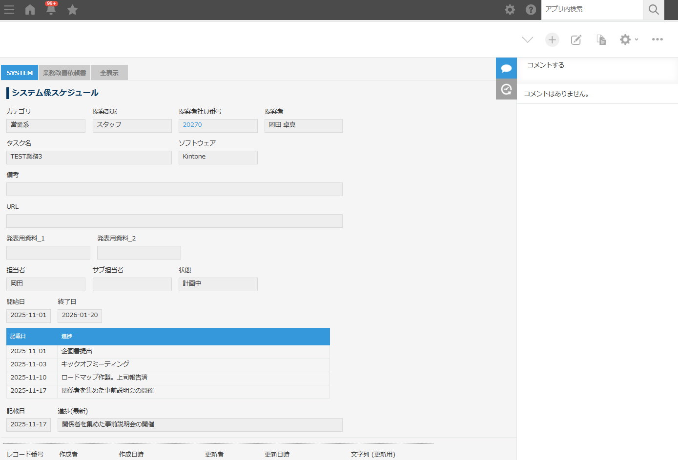 また、履歴を追いたい場合など、スポット的に最新の情報を取りたいときにも便利に活用できており、レコードを開けばすぐに最新の状況がわかるようになっています。