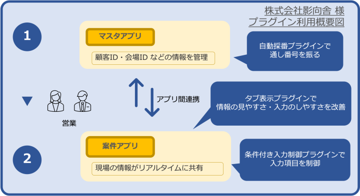 kintone導入前は情報を紙やExcelで管理していたが、kintoneを導入し管理するにあたって、各アプリのデータ連携の際に会場IDや現場IDなどの一意の通し番号が必要になるため、自動採番プラグインを導入した。