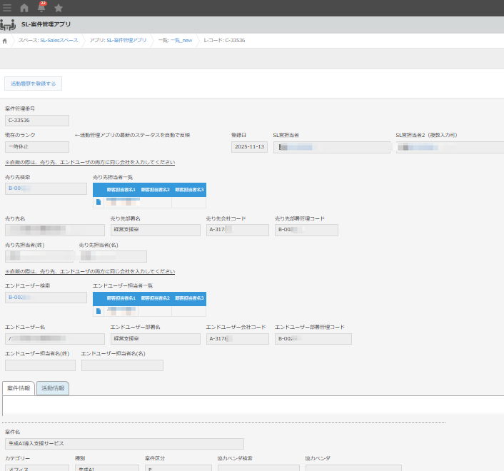 この状況を改善するため、営業全体で共通利用できる統合型の顧客管理アプリを構築し、そこから各部門の案件を作成できる仕組みを整える必要性が高まりました。