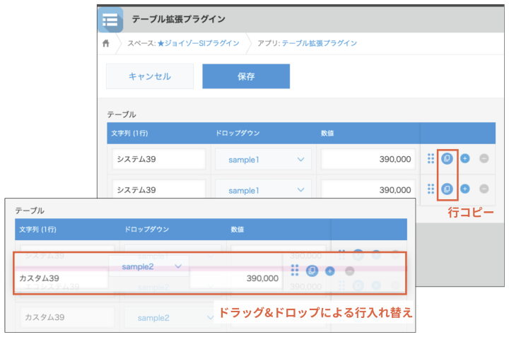 テーブルの行コピーや順番の入れ替えなどテーブルの機能を大幅に強化。ドラッグ&ドロップでマニュアル無く簡単に操作ができるおすすめプラグイン