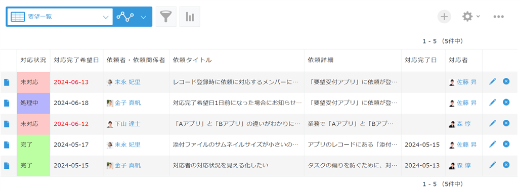 • 作業依頼管理で対応状況や優先度ごとに色分けをする