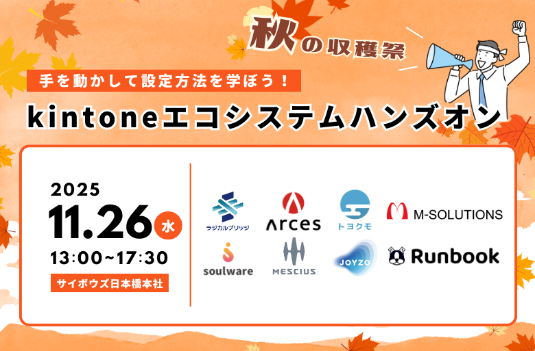 【※現地開催※】手を動かして設定方法を学ぼう! kintoneエコシステムハンズオン〜秋の収穫祭〜